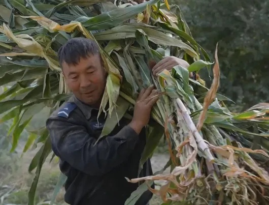 辅警帮助学生的母亲祖莱汉·阿赫马蒂(Zuraihan Ahemati)运送玉米。