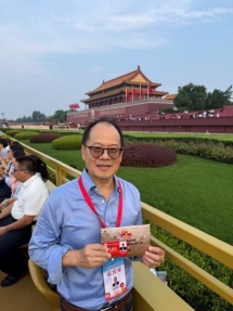 9月3日,张Xueliang的孙子Zhang Juxin被邀请到Tiananmen广场去看军事游行。 (受访者提供的照片)